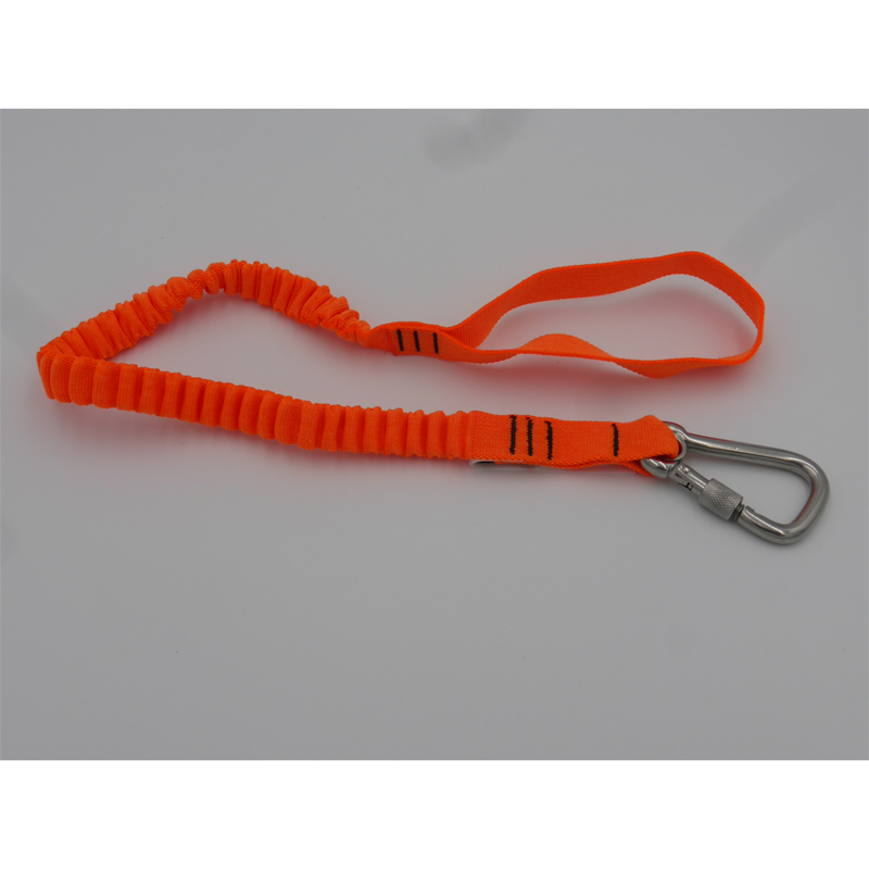 This is a tool tether that is secured (attached) to, for example, a scaffolding tube, frame, roof construction, etc.
